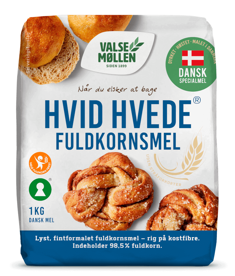 Dansk Hvid Hvede giver fiberrige brød og kager. Hvid Hvede Fuldkornsmel er lys i farven som almindelig hvedemel, men samtidig rig på kostfibre som fuldkornsmel, da alle skaldele bevares via en specieludviklet formalingsteknik.
