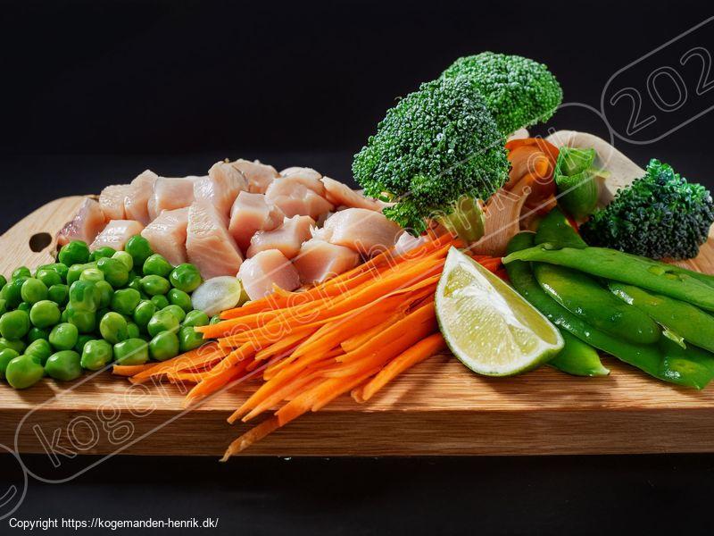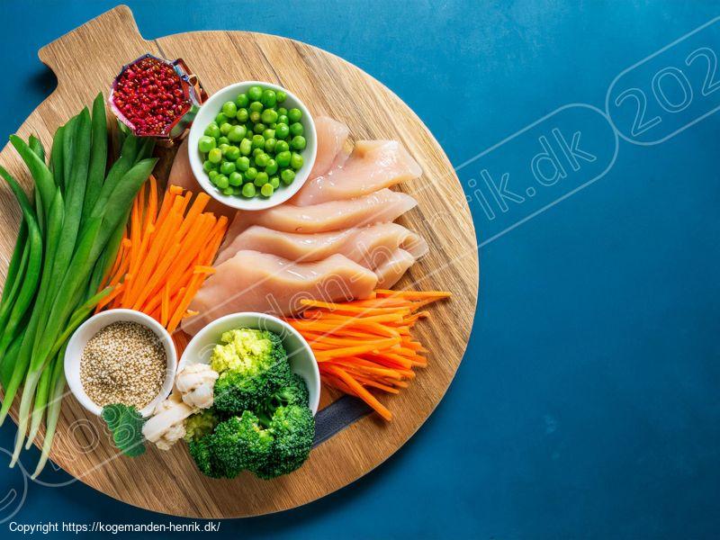 Forbered alle ingredienser på forhånd: Sørg for at have alle grøntsager snittet og kyllingen skåret, inden du starter. Wokretter kræver hurtig tilberedning, så det er godt at være forberedt.